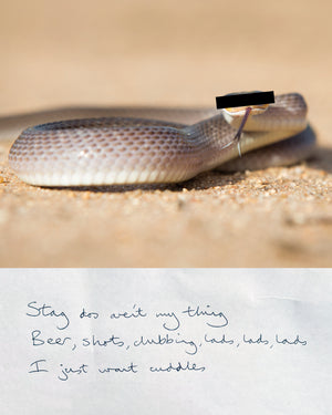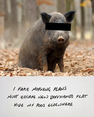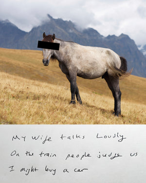 As a series, these works form a patchwork of human experience, shifting between the profound and the ridiculous. Through a blend of stark honesty and surreal aesthetic, Anonymous Animal Haiku Confessions conveys the quiet absurdities that connect us all.