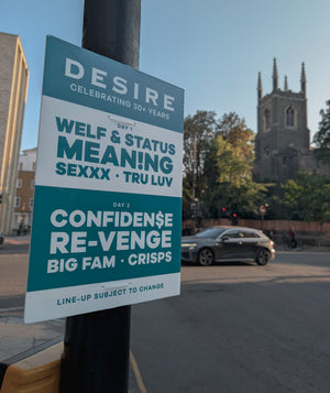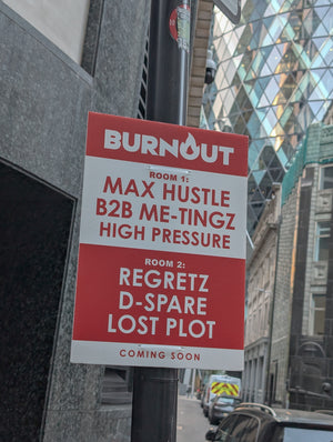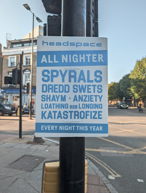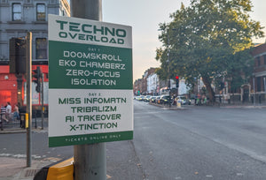 Raving is a street art series of posters, each designed in the style of flyposted adverts that promote raves and club nights. Installed across London, they borrow the urgent typography of underground nightlife - but instead of announcing an event, they highlight the states and emotions of everyday life.